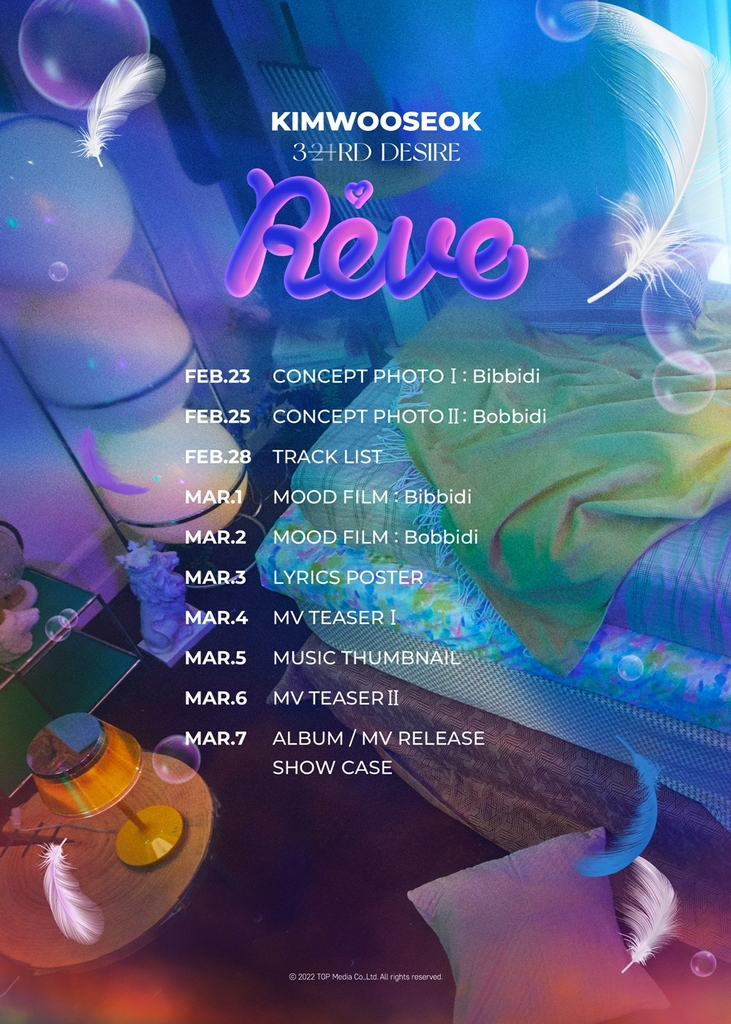 21일 소속사 티오피미디어에 따르면 김우석은 다음 달 7일 세 번째 미니음반 '서드 디자이어 [레브]'(3RD DESIRE [Reve]를 발표한다.