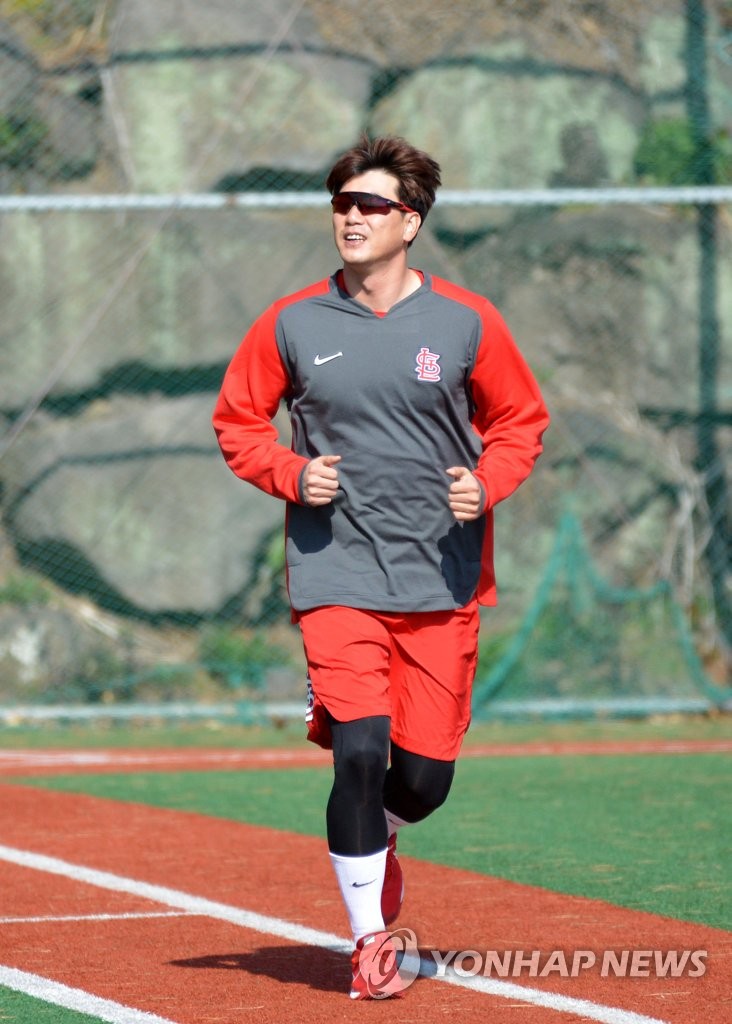 | ▲ 훈련 전 몸 푸는 김광현 미국 프로야구 메이저리그 세인트루이스 카디널스의 김광현이 3일 제주도 서귀포시 강창학야구장 보조경기장에서 열린 훈련에 참가해 달리기를 하며 몸을 풀고 있다. [연합뉴스 자료사진] |