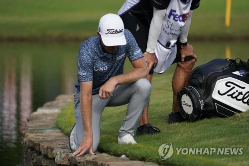 | ▲ 연장전에서 가까스로 물에 빠지지 않은 볼을 살피는 잴러토리스. [AP=연합뉴스] |