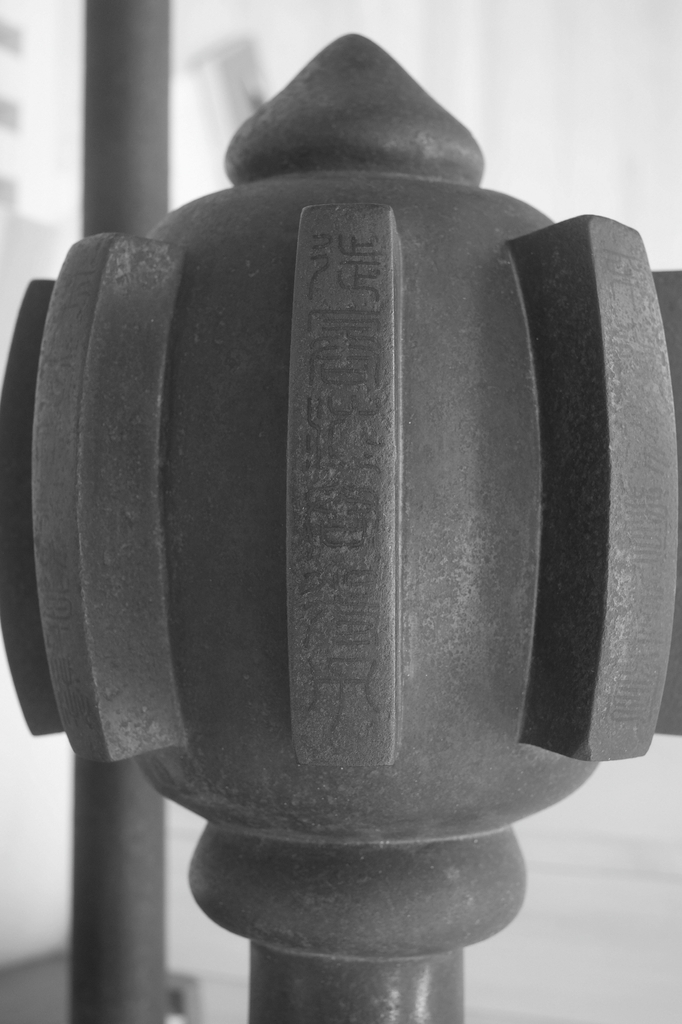 한편, 의장용 철퇴 돌기에 대한 내시경과 적외선 카메라와 엑스레이 촬영 등 과학적 조사 과정에서는 입사(入絲, 금속을 파낸 뒤 다른 색상의 금속을 넣는 것)로 장식된 전서체 글씨가 확인됐다.