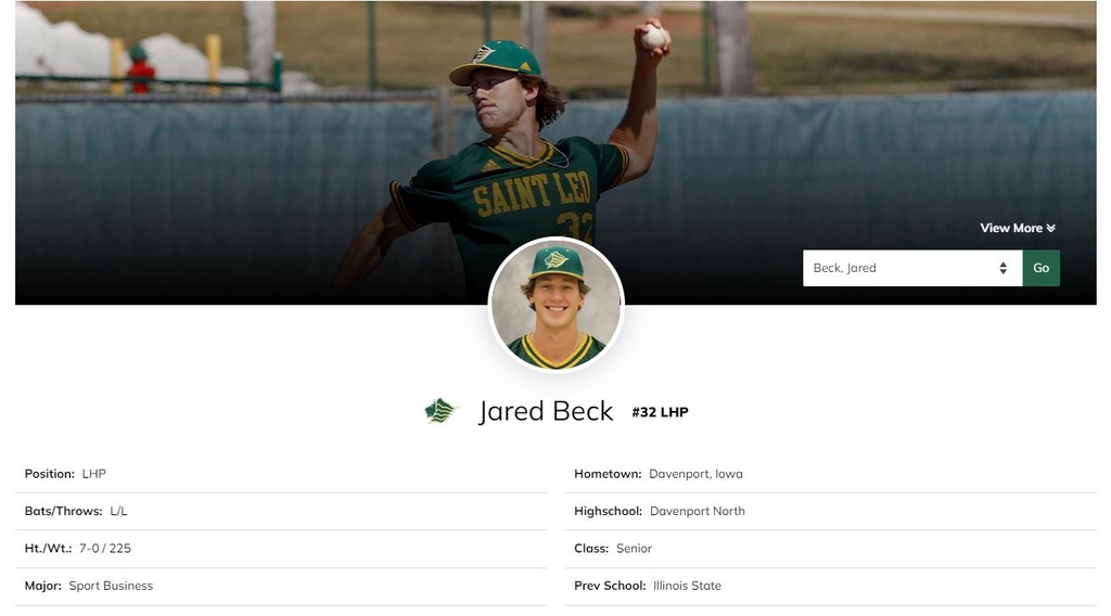 | ▲ MLB 볼티모어가 지명한 키 213㎝짜리 투수 벡 [세인트 레오 대학 홈페이지 캡처. 재판매 및 DB 금지] |