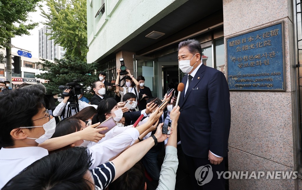 | ▲ South Korean Foreign Minister Park Jin speaks to reporters after visiting the Japanese embassy's public information and cultural center in Seoul on July 11, 2022, to mourn the death of former Prime Minister Shinzo Abe. (Yonhap) |