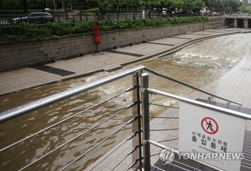 Seoul saw more than 98 mm of rain between 3 p.m. Wednesday and 8 a.m Thursday, and the weather agency said the capital area is forecast to experience per-hour precipitation of up to 100 mm in the morning.