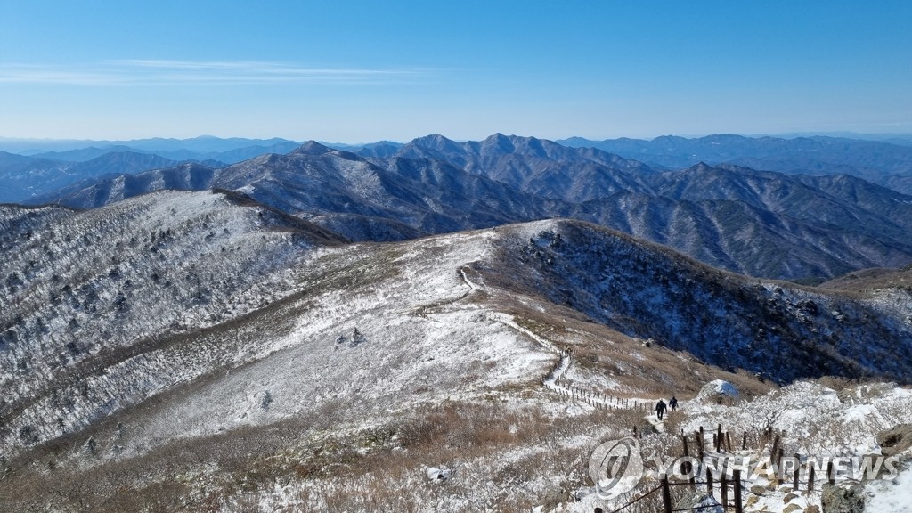 (장수=연합뉴스) 전북 장수군 남덕유산이 1일 눈으로 뒤덮여 아름다운 풍경을 연출하고 있다.
