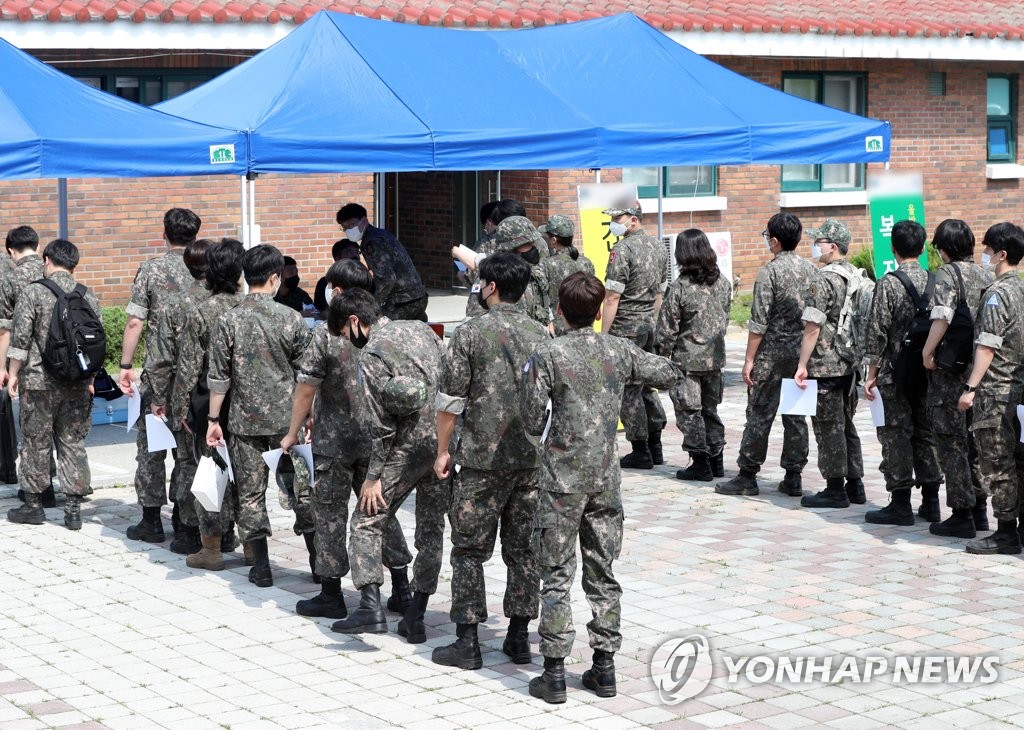| ▲ This file photo, taken June 21, 2022, shows reservists standing in line at a military base in Chuncheon, 85 kilometers east of Seoul, to take part in their reserve forces' training. (Yonhap) |