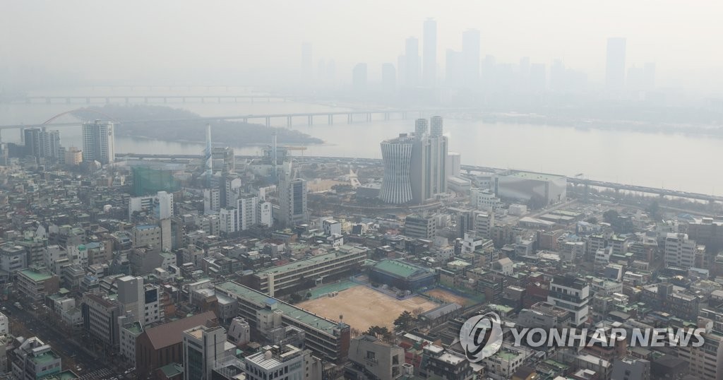 | ▲ This bird-eye's view of Seoul's western area shows the sky thick with fine dust on Feb. 6, 2023. (Yonhap) |