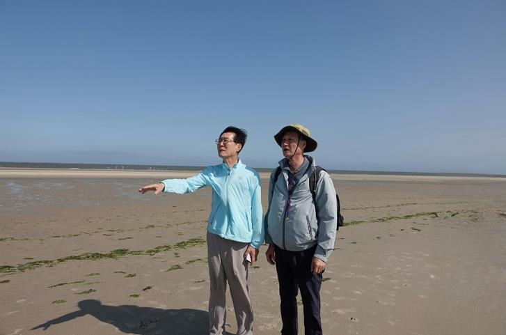 ▲ 와덴해 찾은 박우량(왼쪽) 신안군수 [신안군 제공·재판매 및 DB 금지]