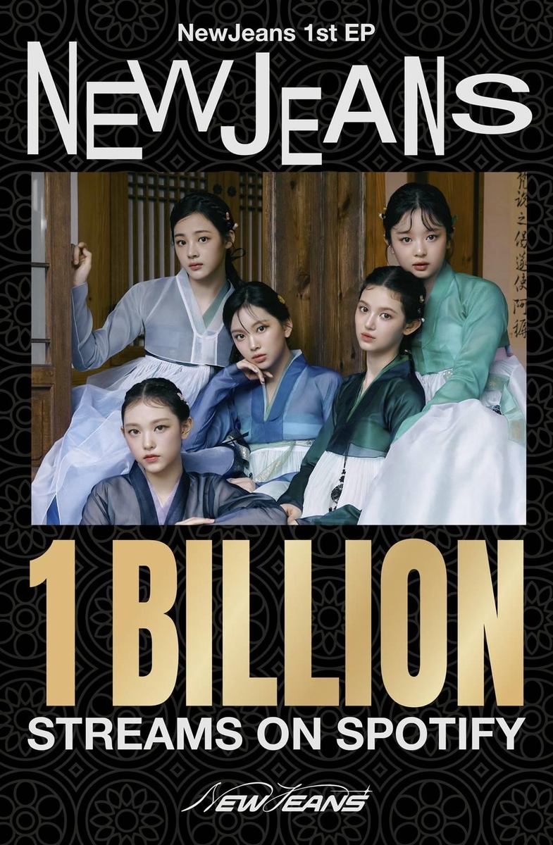 뉴진스 데뷔 앨범, 스포티파이서 누적 10억 스트리밍 돌파