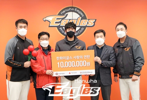 (서울=연합뉴스) 하남직 기자 = 프로야구 한화 이글스 선수와 구단 직원이 연고지 저소득층을 위해 1천만원을 기부했다.