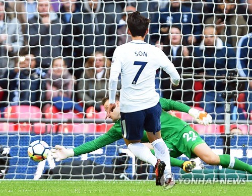| ▲ 2017년 10월 리버풀과 홈 경기에서 골 넣는 손흥민 [EPA=연합뉴스 자료사진] |