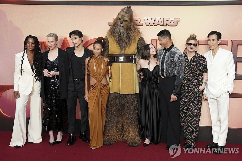 | ▲ '애콜라이트' 출연진이 지난 26일(현지시간) 영국 런던에서 열린 시사회에 참석한 모습. 맨 오른쪽이 이정재 [AP=연합뉴스. 재판매 및 DB 금지] |