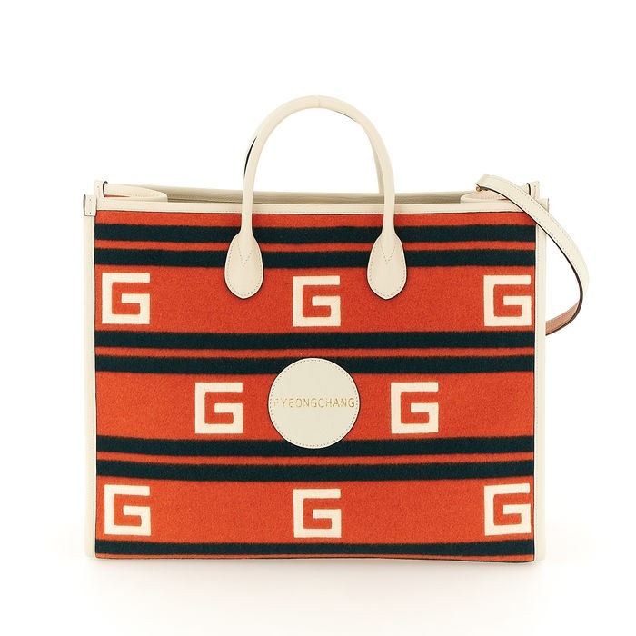 오렌지 컬러에 화이트 레더를 사용했고 '평창'(Pyeongchang) 도시명을 담았다.