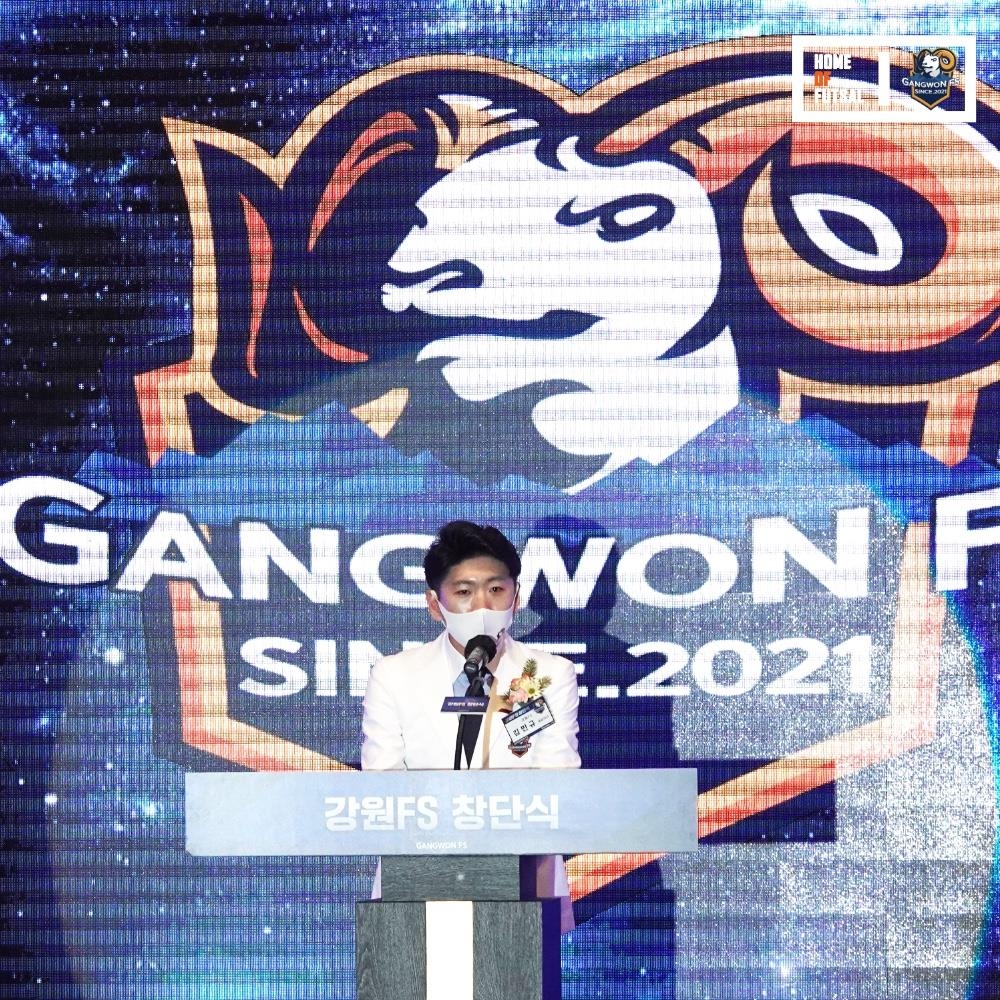 | ▲ 지난해 12월 11일 창단식에 인사말 하는 김민규 대표 [강원스포츠클럽 제공.재판매 및 DB 금지] |