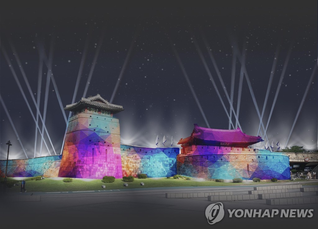 (수원=연합뉴스) 김인유 기자 = 경기 수원시는 8일 '수원화성 미디어아트쇼'가 올해에 이어 내년에도 문화재청이 주관하는 세계유산활용 미디어아트 공모사업에 선정됐다고 밝혔다.
