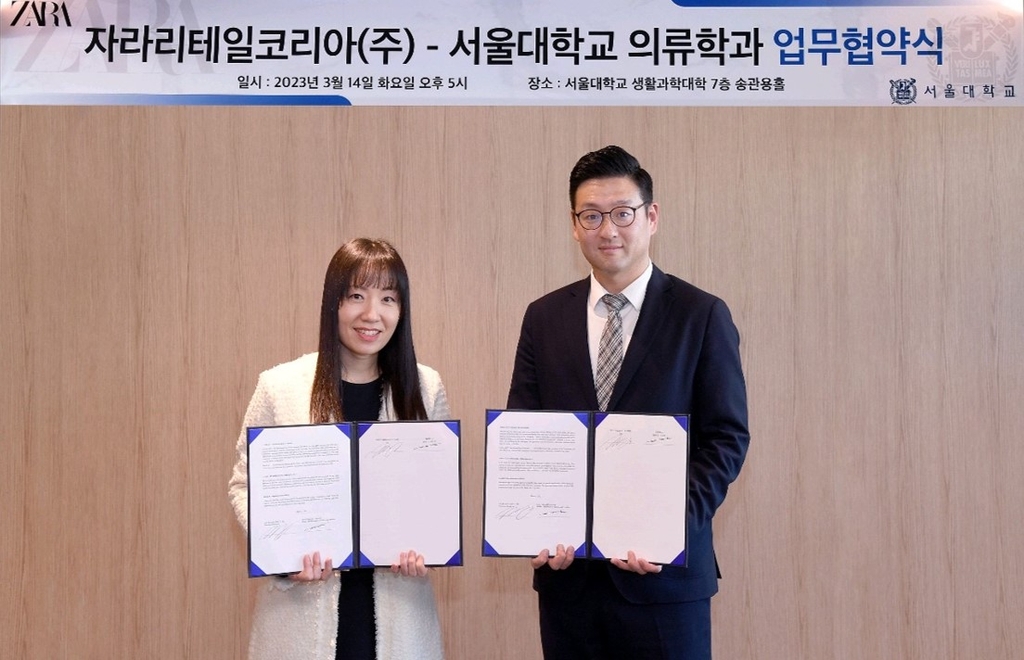 (서울=연합뉴스) 오지은 기자 = 자라리테일코리아는 14일 서울대 의류학과와 교류 협력·전문인력 양성을 위한 업무협약(MOU)을 체결했다고 15일 밝혔다.
