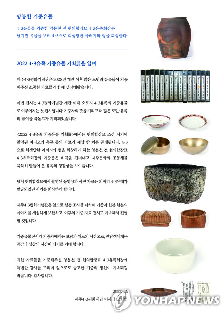 | ▲ 양봉천 기증유물 포스터 [제주4.3평화재단 제공. 재판매 및 DB 금지] |