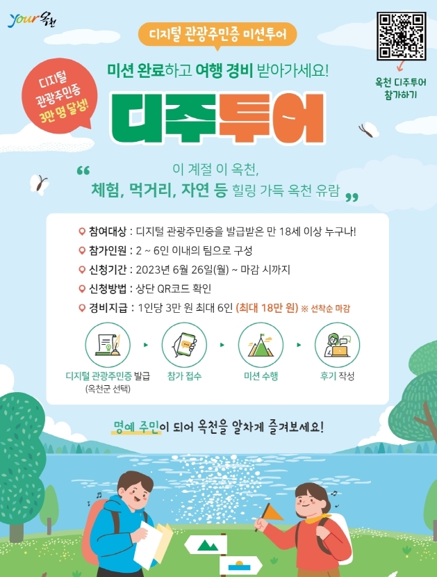 옥천군은 관광주민 3만명 돌파를 기념해 이들을 대상으로 미션투어(디지털관광주민투어, 디주투어)를 진행한다.