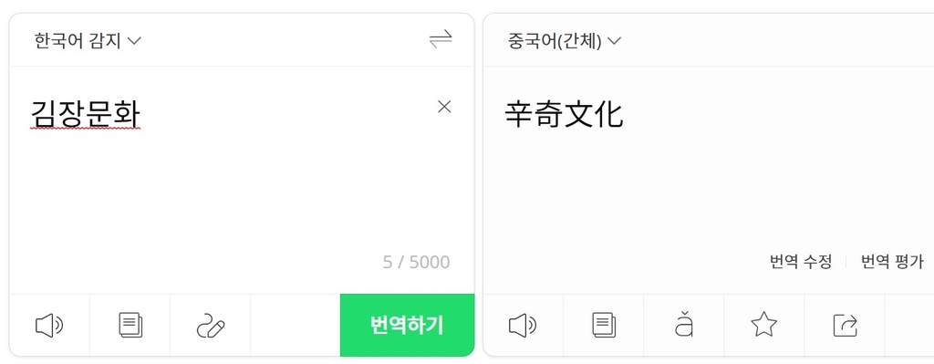 네이버는 이날 오전 9시 30분께 파파고의 '김장문화' 번역 결과를 '辛奇文化'로 변경했다.