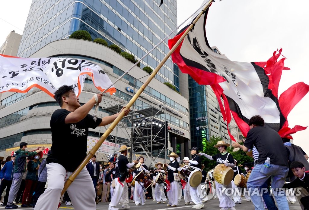 (광주=연합뉴스) 천정인 기자 = 5·18 민주화운동 43주년을 기념하는 시민 행사의 꽃 전야제 공연이 민주평화 대행진을 시작으로 막이 올랐다.