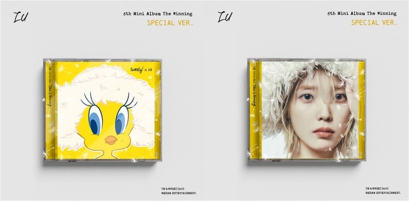 아이유는 이달 20일 발매를 앞둔 여섯 번째 미니음반 '더 위닝'(The Winning)을 기존에 예고한 '아이 윈 버전'(I win VER.)과 '유 윈 버전'(U win VER.) 외에도 트위티 버드를 재킷 이미지에 사용한 '스페셜 버전'으로도 내놓는다.
