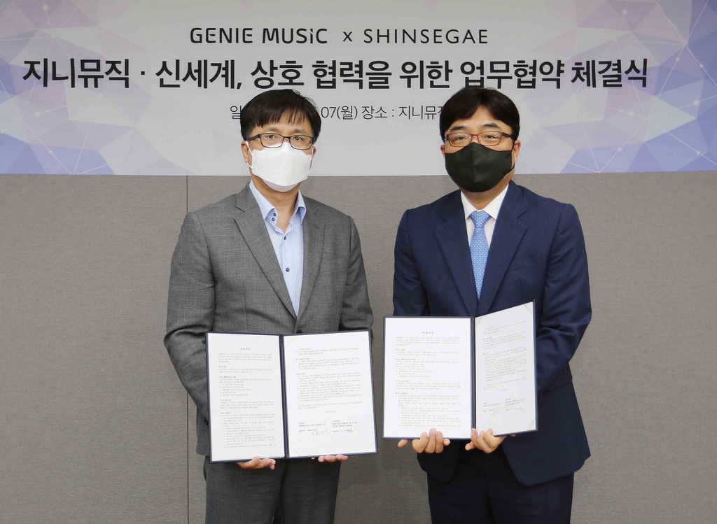 | ▲ 신세계 영업본부장 임훈 부사장(왼쪽)과 지니뮤직 조훈 대표이사 [신세계백화점 제공. 재판매 및 DB 금지] |