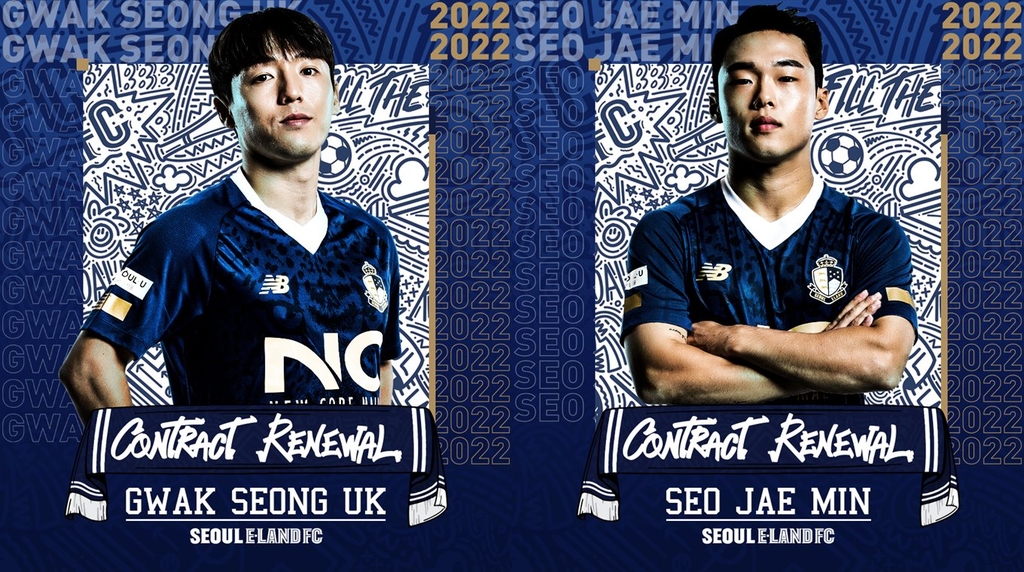 (서울=연합뉴스) 장보인 기자 = 프로축구 K리그2(2부리그) 서울 이랜드는 미드필더 곽성욱(28), 서재민(24)과 재계약했다고 10일 밝혔다.