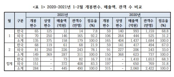 | ▲ 2021∼2021년 1∼2월 관객 수 비교 [영화진흥위원회 제공. 재판매 및 DB 금지] |