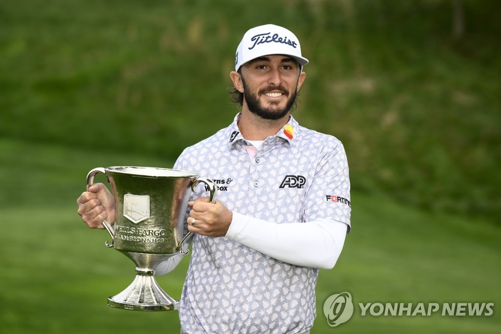 | ▲ 웰스 파고 챔피언십 우승 트로피 든 맥스 호마 [AP=연합뉴스] |
