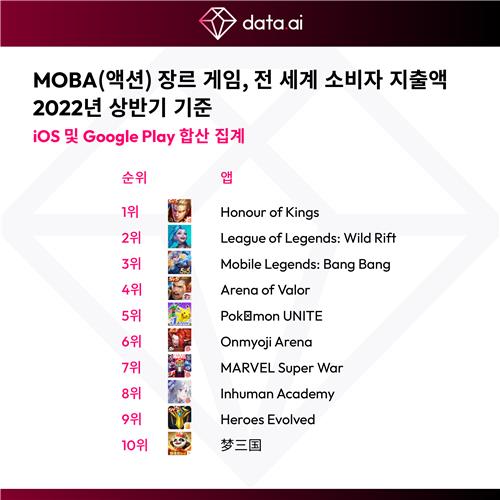 | ▲ 멀티플레이어 아레나(MOBA) 장르 게임의 전 세계 매출액 순위 [data.ai 제공. 재판매 및 DB 금지] |