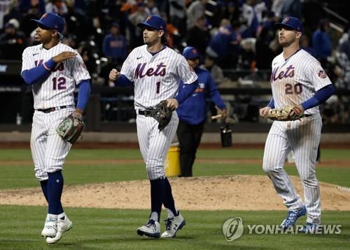 (서울=연합뉴스) 천병혁 기자 = 지난해 미국프로야구에서 깜짝 타격왕을 차지한 제프 맥닐(31·뉴욕 메츠)이 다년 계약을 공식 발표하는 자리에서 팀 동료 프란시스코 린도어(30·뉴욕 메츠)와의 내기 결과도 공개했다.