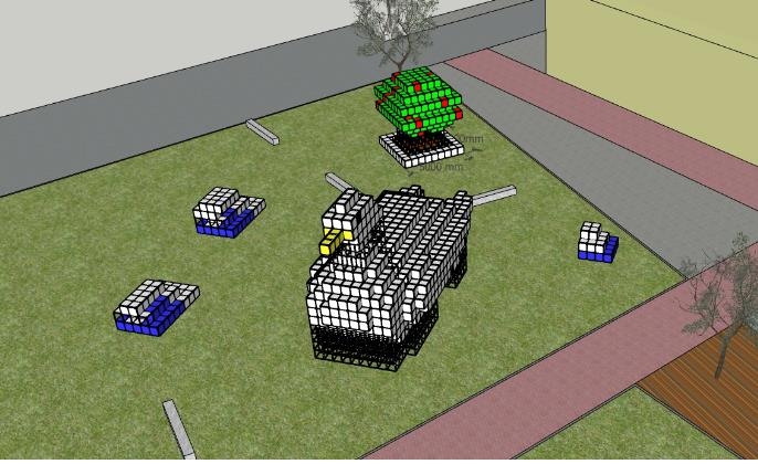 전국에서 수거한 폐플라스틱 27t을 내열성과 내충격성이 우수한 고기능성 플라스틱과 가공성이 좋은 폴리염화비닐(PVC)로 분리 사출한 뒤 1만5천개의 모듈러를 만들었다.