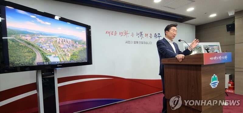 | ▲ 현안 브리핑하는 원강수 시장 [연합뉴스 자료사진] |