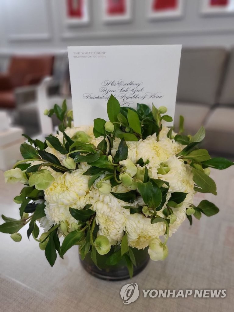| ▲ This photo provided by the presidential office shows condolence flowers sent by U.S. President Joe Biden and first lady Jill Biden to South Korean President Yoon Suk Yeol over the recent death of his father, Yoon Ki-jung. (PHOTO NOT FOR SALE) (Yonhap) |
