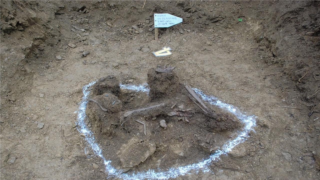 | ▲ This photo, provided by the defense ministry on March 10, 2023, shows the recovered remains of Pfc. Kim Bong-hak at the border county of Yanggu, 175 kilometers east of Seoul, on July 19, 2011. (PHOTO NOT FOR SALE) (Yonhap) |