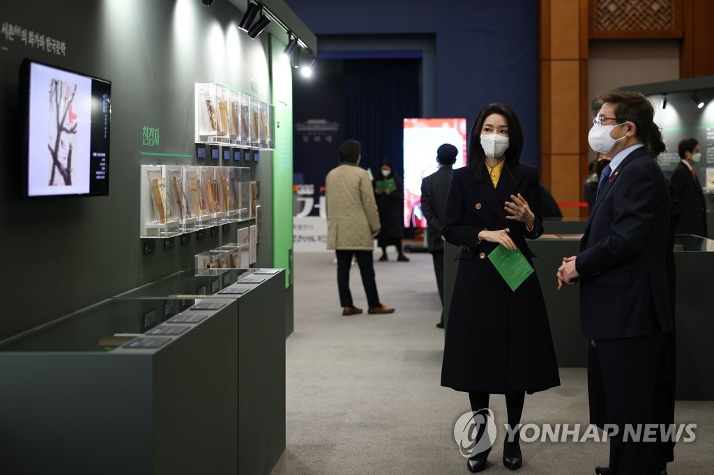 | ▲ 근현대 문인 대표작품 살펴보는 김건희 여사 (서울=연합뉴스) 안정원 기자 = 윤석열 대통령 부인 김건희 여사가 9일 청와대 춘추관에서 열린 '청와대 춘추관 문학특별전시회'를 찾아 이상,염상섭,현진건, 윤동주 등 근현대 문인들의 대표작품을 살펴보고 있다. 2023.1.9 [대통령실 제공. 재판매 및 DB금지] jeong@yna.co.kr |