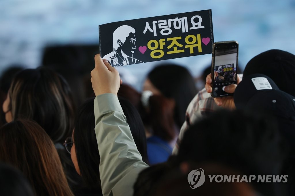 량차오웨이는 얼굴에 수줍은 미소를 띤 채 자신을 기다려준 팬들을 향해 손을 흔들며 화답했다.