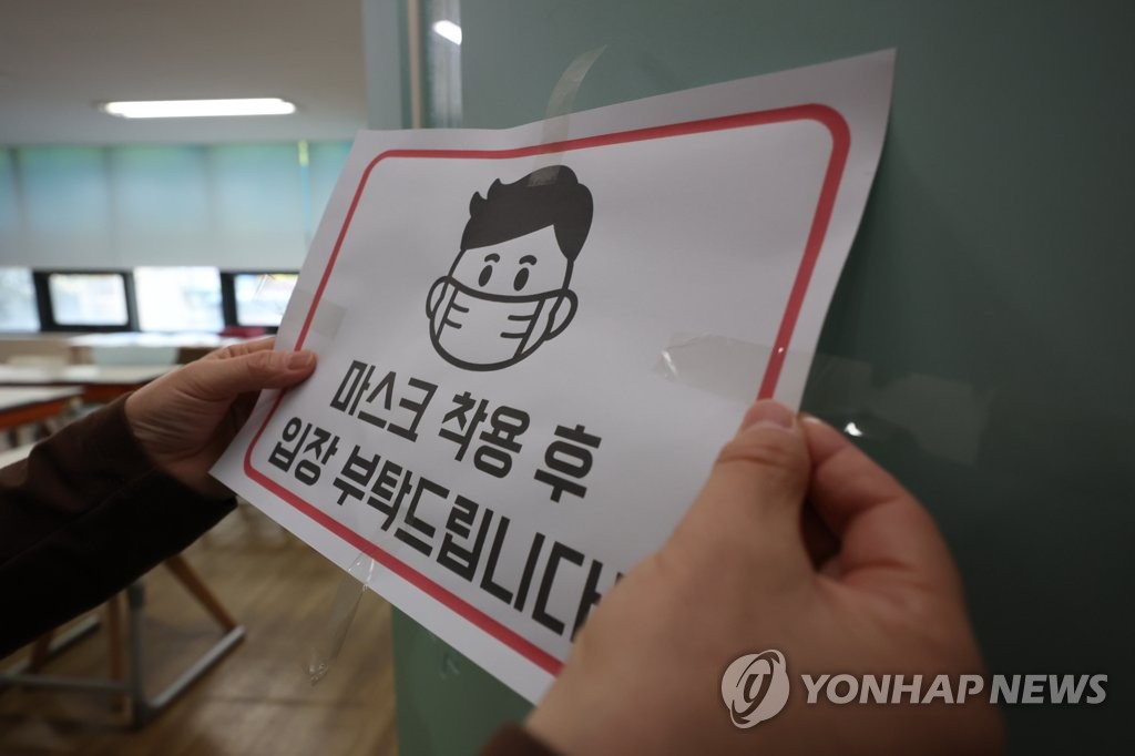 | ▲ 제거되는 '실내 마스크 안내문' [연합뉴스 자료사진] |