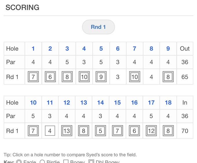 이 선수는 파70의 18개 홀에서 보기 1개, 더블 보기 3개, 트리플 보기 4개를 적어냈다.