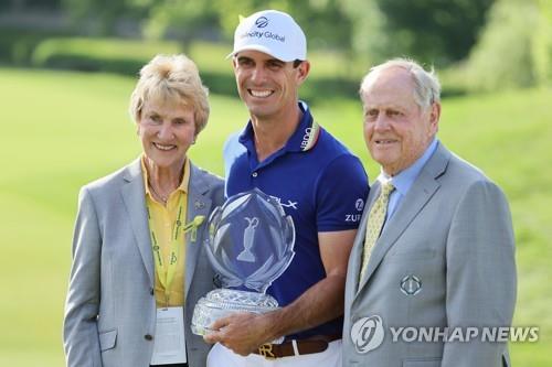 | ▲ 지난달 메모리얼 토너먼트 시상식에서 잭 니클라우스 부부와 함께 선 빌리 호셜. [AFP/게티이미지=연합뉴스] |