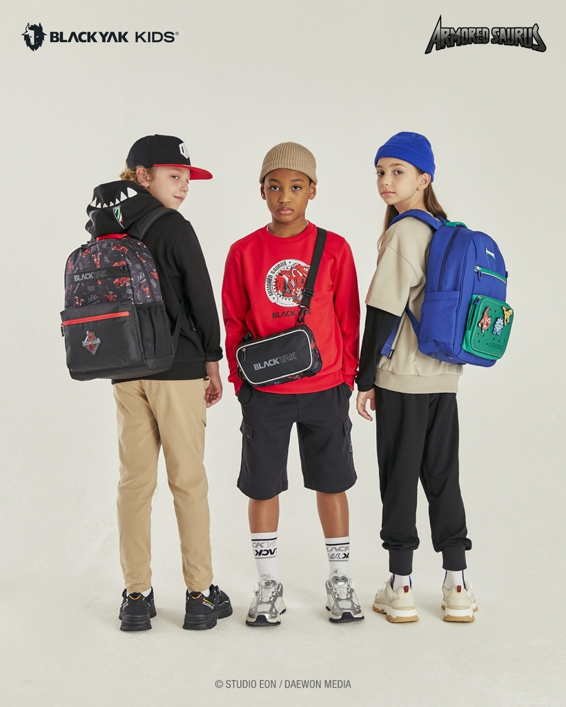 블랙야크키즈는 애니메이션 '아머드 사우루스'와 협업한 책가방을 선보인다.