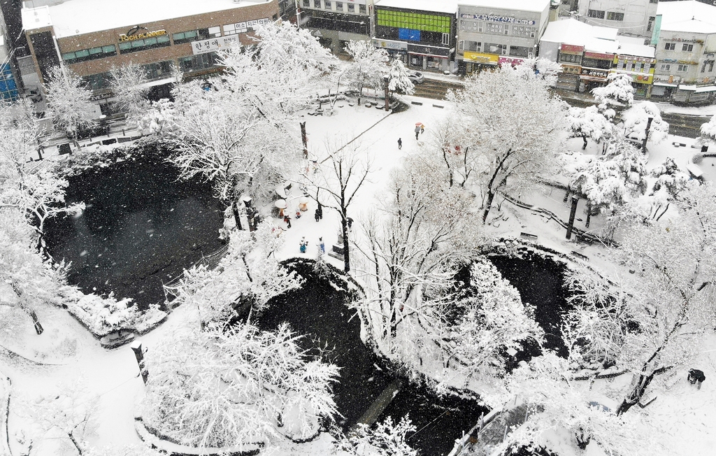 | ▲ 지난 15일 함박눈 내린 태백시 황지연못 [태백시 제공.재판매 및 DB 금지] |