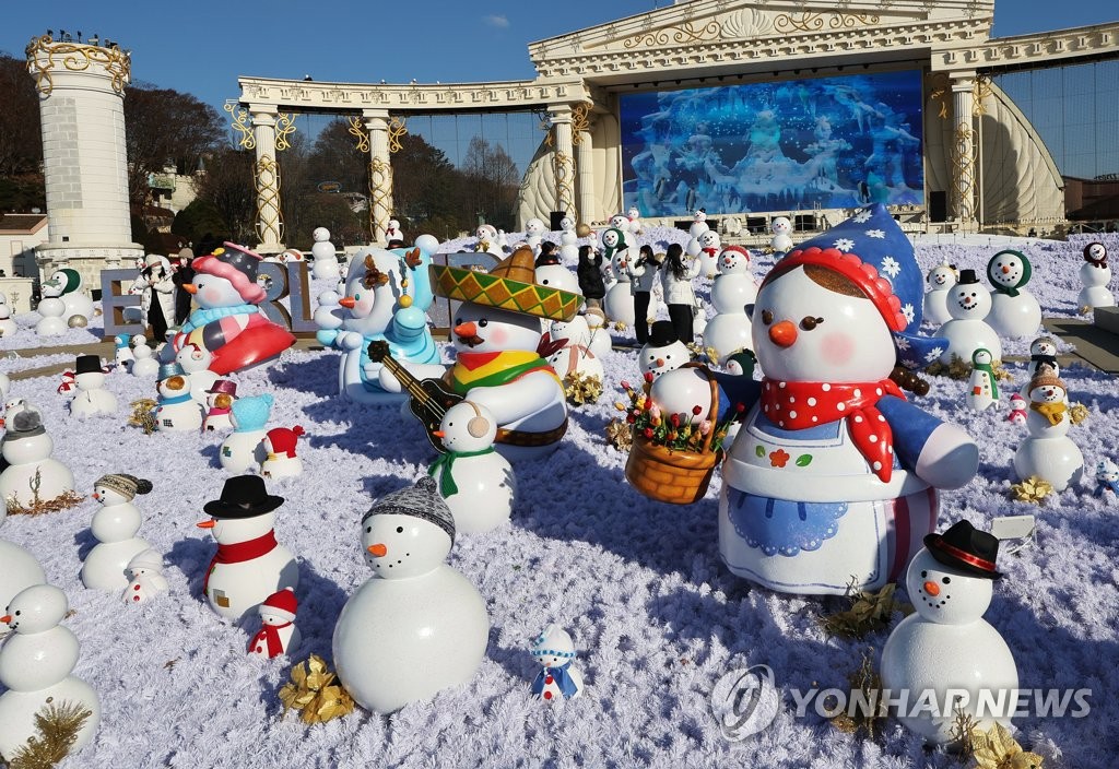 | ▲ 각양각색 눈사람 (용인=연합뉴스) 홍기원 기자 = 1일 오후 경기도 용인시 에버랜드 '스노우맨 월드'에서 시민들이 2천23개의 눈사람을 보며 겨울 정취를 만끽하고 있다. 2022.12.1 xanadu@yna.co.kr |