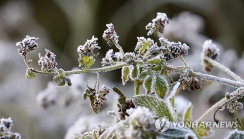 The lowest daily temperatures fell to around 5 C in most of the country, while residents in inland mountain areas experienced a morning low of around zero and a mix of frost and ice, the Korea Meteorological Administration (KMA) said.