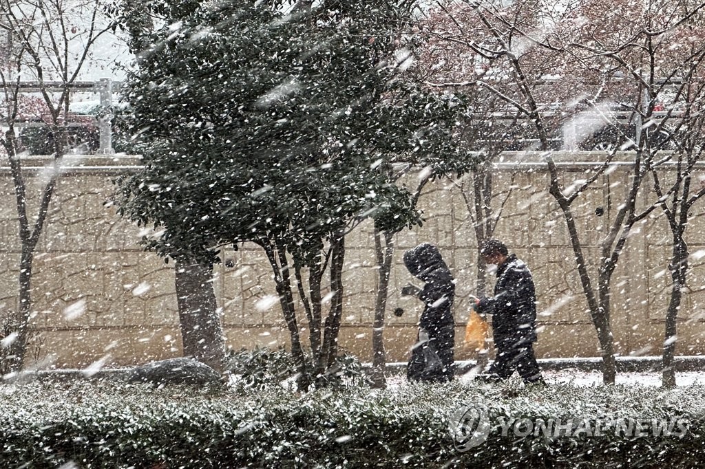 | ▲ Snow falls in downtown Gwangju, some 270 kilometers south of Seoul, on Dec. 17, 2022. (Yonhap) |