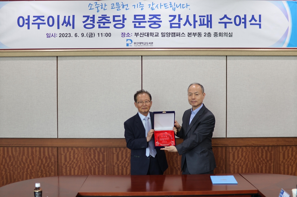 (부산=연합뉴스) 오수희 기자 = 부산대 도서관은 여주이씨 밀양파 경춘당 문중으로부터 집안 대대로 전해 온 고문헌 1천여 점을 기증받았다고 12일 밝혔다.
