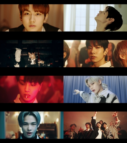 | ▲ This photo, provided by Belift Lab, shows clips from K-pop boy band Enhypen's new music video "Drunk-Dazed." (PHOTO NOT FOR SALE) (Yonhap) |