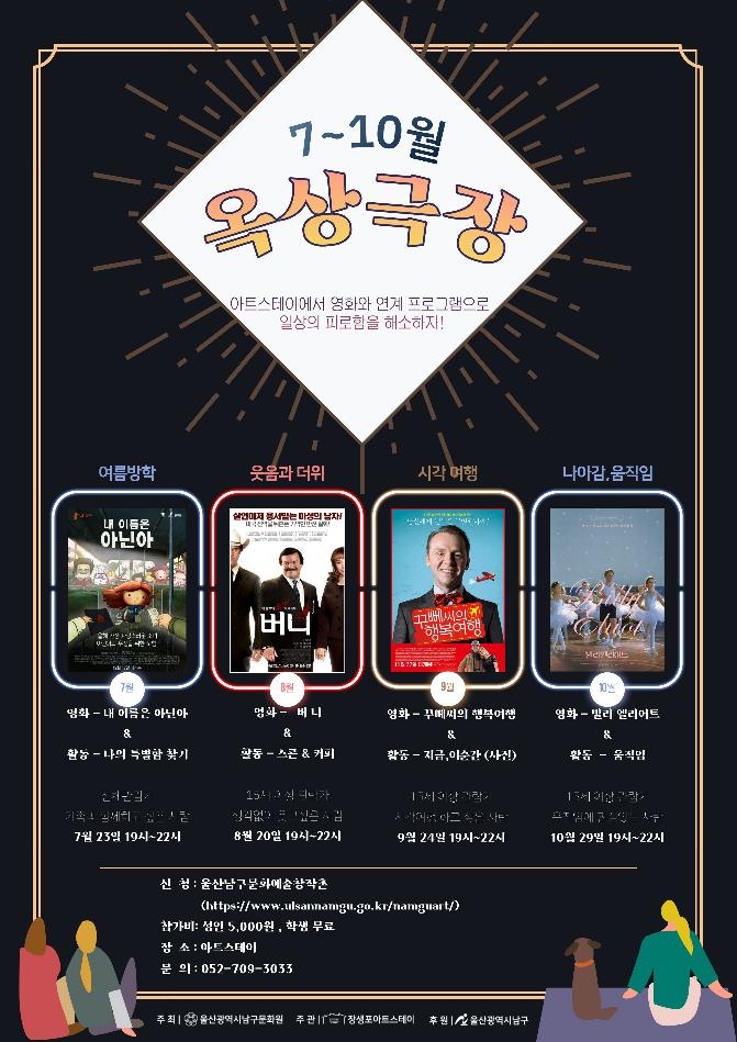 울산 남구(구청장 서동욱) 장생포 아트스테이는 오는 7∼10월까지 총 4번의 옥상극장을 개최한다고 밝혔다.