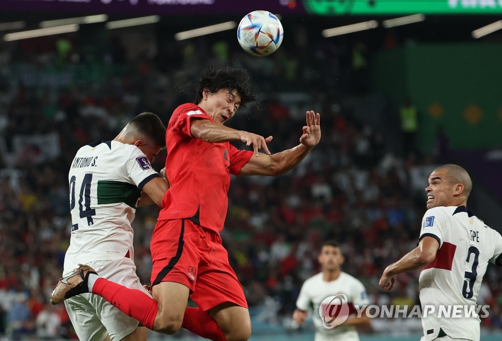 | ▲ 조규성 헤더 (알라이얀=연합뉴스) 임헌정 기자 = 지난달 3일 오전(한국시간) 카타르 알라이얀의 에듀케이션 시티 스타디움에서 열린 2022 카타르 월드컵 조별리그 H조 3차전 대한민국과 포르투갈 경기. 전반 한국 조규성이 헤더 공격을 펼치고 있다. 2022.12.3 kane@yna.co.kr |