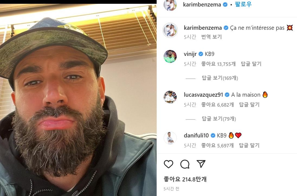 벤제마는 17일 인스타그램에 자신의 얼굴 사진을 올리며 별다른 설명 없이 "난 관심 없다"고 썼다.