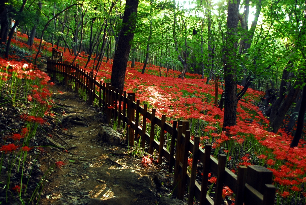 해보면 용천사 인근 꽃무릇공원은 매년 9월 중순 붉은 융단을 펼쳐놓은 듯 장관을 이룬다.